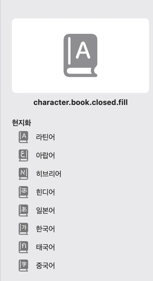 또 놀라웠던 기능 중 하나는 시스템 지역에 맞춰서 변경되는 symbol이였다. 아쉽게도 한국어를 모든 아이콘에서 적용하진 않았다...