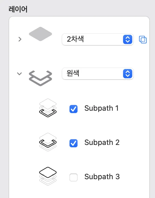 어떤 레이어를 원색으로 할 것인지부터 시작해서, 원하는 패스 선택, 레이어 나누기(최대 3단계까지), 레이어별 색상지정 등 한가지 symbol을 원하는데로 편하게 꾸밀 수 있었다.