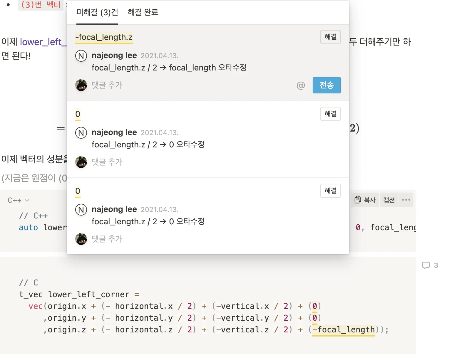 수정한 부분에 대한 피드백을 남김니다!