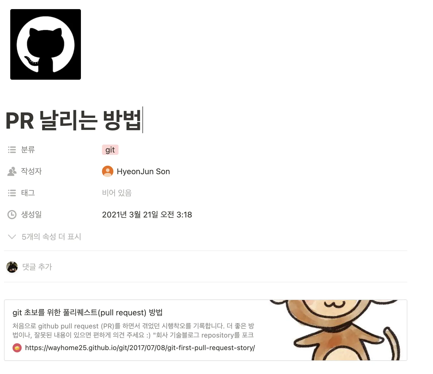 우선 나만의 노션 페이지(위치는 어디든 상관 없습니다!!)가 필요합니다!