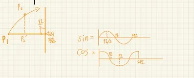 따라서 P1이 2Theta만큼 회전한 P2의 좌표는, (0 + r * cos(2Theta), y - sin(2Theta)이다.