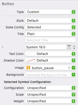 전자의 방식을 통해서는 정상적으로 작동하는 것을 확인했으나, 인터페이스 빌더를 활용하는 경우, 클릭시에 아래와 같이 Selected의 Image가 일시정지 모양이 아닌 것을 확인했습니다.