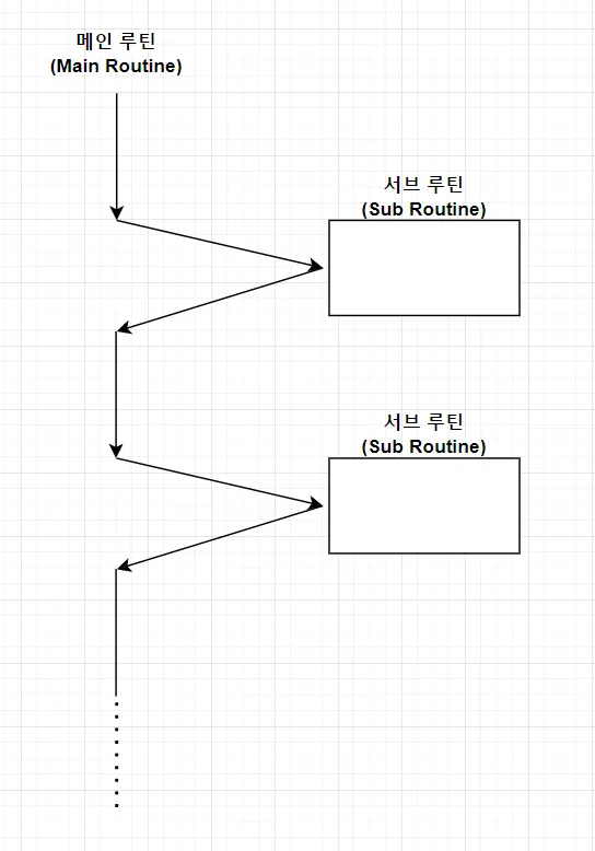 여기서 주된 흐름에 해당하는 루틴을 메인루틴(Main Routine), 메인루틴이 호출하는 루틴을