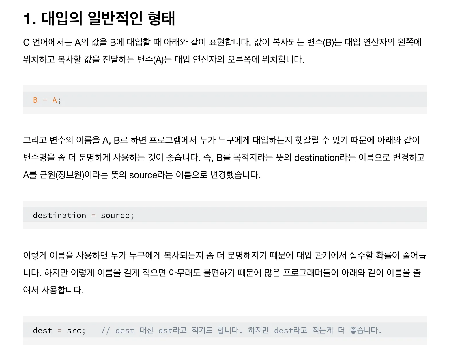 destination = source; → dest = src; 로 줄여쓰기도 함.