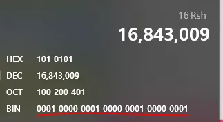 위의 예제에서 int 배열을 1로 초기화 하려고 했을 때, 왜 1이 되지 않는지 살펴보자. memset은 1바이트 단위로 초기화 시킨다. 그럴 때 4바이트 크기를 갖는 int 데이터 하나는 과 같은 형태를 띄게 된다.