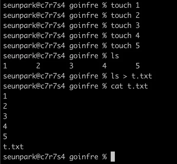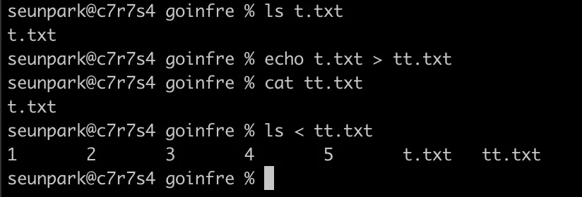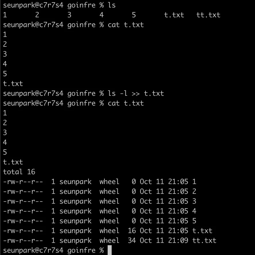 ls -l 10 > tt.txt 는 ls -l 10 1> tt.txt와 같은 동작을 한다. 즉, fd 1의 값인 stdout을 저장한다는 뜻이다.