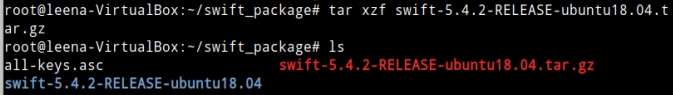 tar xzf swift-5.4.2-RELEASE-ubuntu18.04.tar.gz