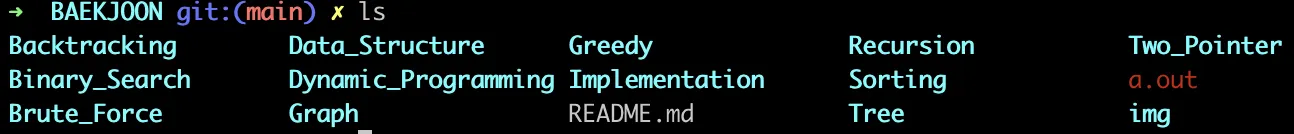 저의 백준 디렉토리에서 tig를 사용해 보겠습니다.