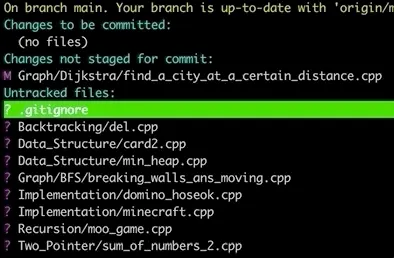 위와 같이 아직 staging area에 포함되지 않은 Untracted files들의 목록과 Unmodified 상태의 파일을 수정하여 Modified 상태인 파일의 모습을 한 눈에 확인할 수 있게 됩니다.