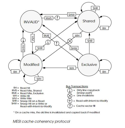 MESI protocol이 불가능한 프로세서에서는 메모리 버스 전체를 잠궈버리는 식으로 구현된다.