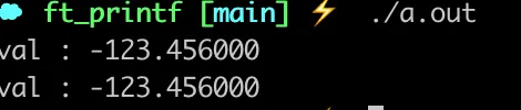printf("val : %f\n", -123.456);