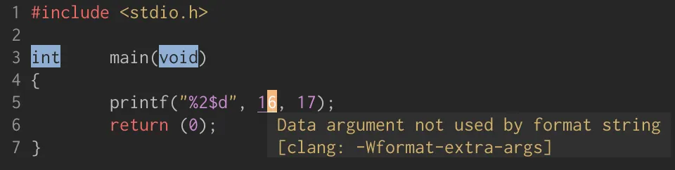 printf("%2$d %2$#x; %1$d %1$#x", 16, 17);