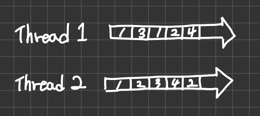 위에서 멀티 스레딩을 설명했는데, 사실 위와 같이 단순히 진행되지 않는다.