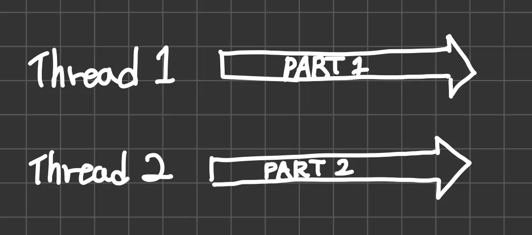 파트 1을 1번 스레드, 파트 2를 2번 스레드에서 실행한다.