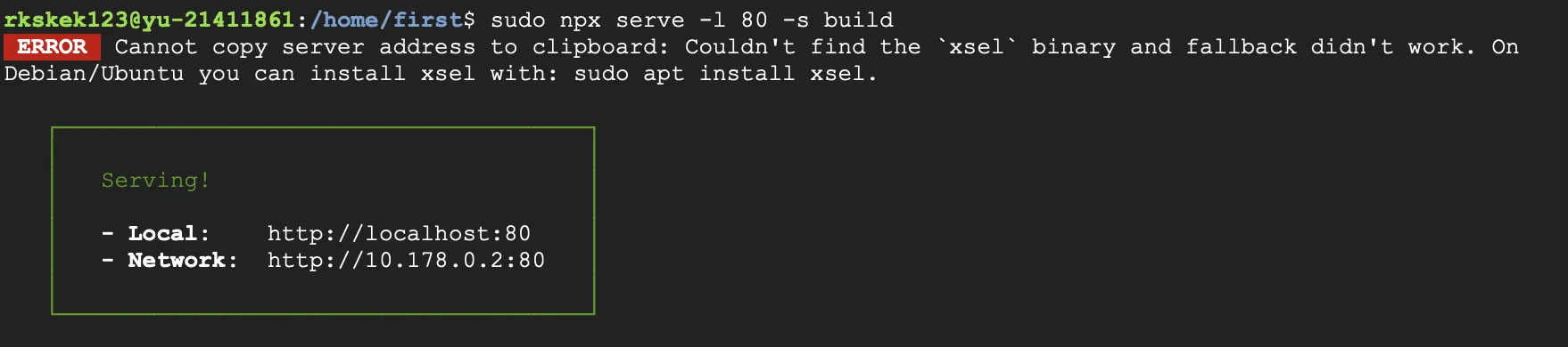 sudo npx serve -l 80 -s build # build 파일을 80 포트로 배포
