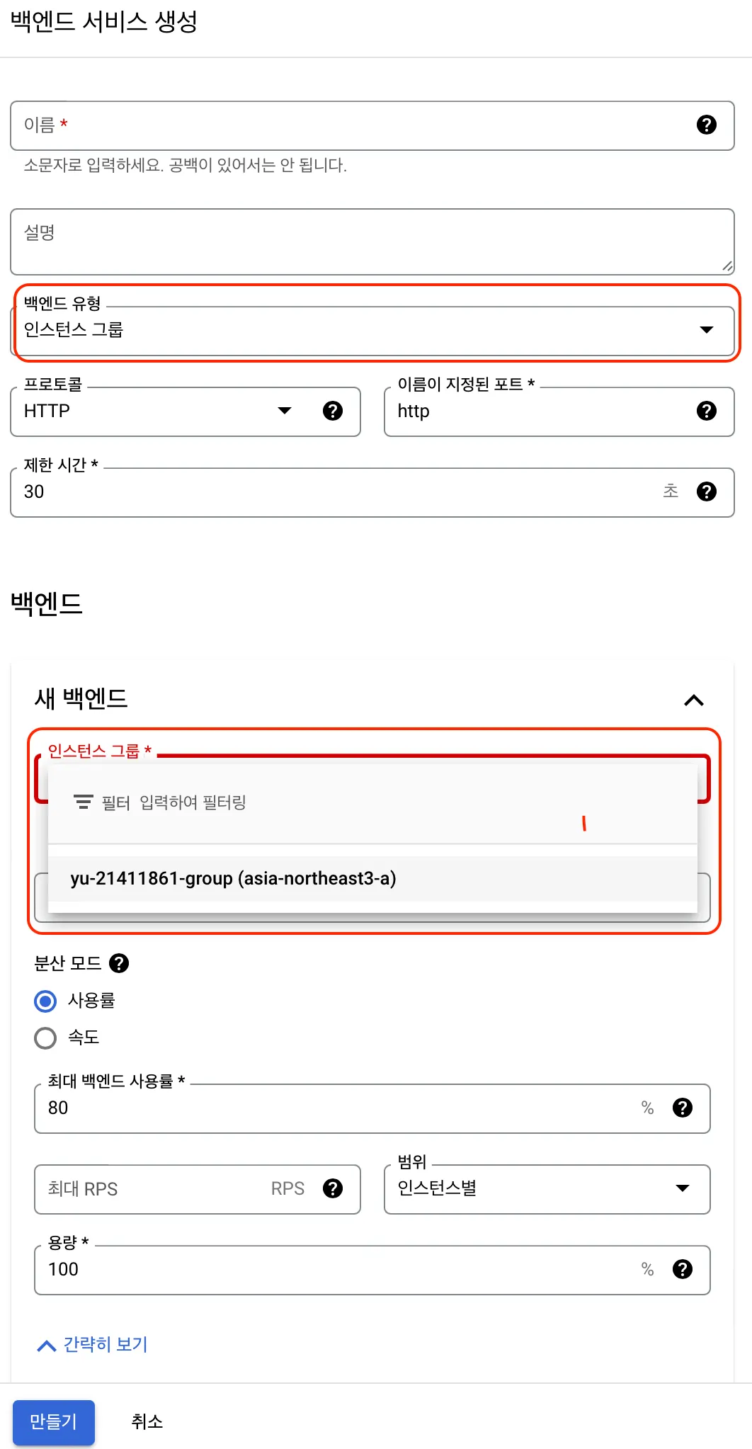 2) 인스턴스 그룹 생성