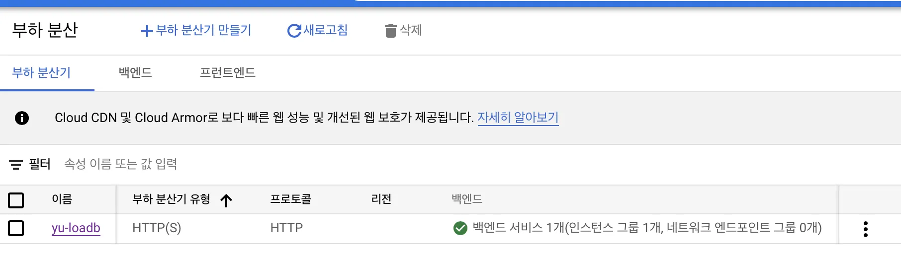 이제 아래처럼 부하분산기가 생성된 것을 확인할 수 있다.