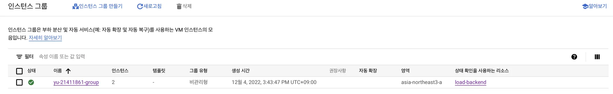 이제 부하분산기에서 활용할 인스턴스 그룹을 만들어주어야한다.