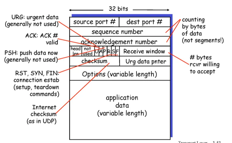 flow controlled: 윈도우 크기만큼 데이터를 보내되, 리시버의 소화 능력에 맞춰서 보내야한다.