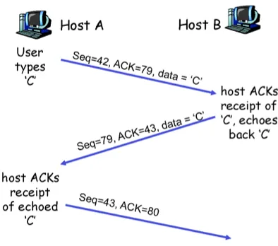 Host A의 센더는 42번을 보내고 리시버는 ACK으로 79번을 받아야 할 차례이기 때문이다.