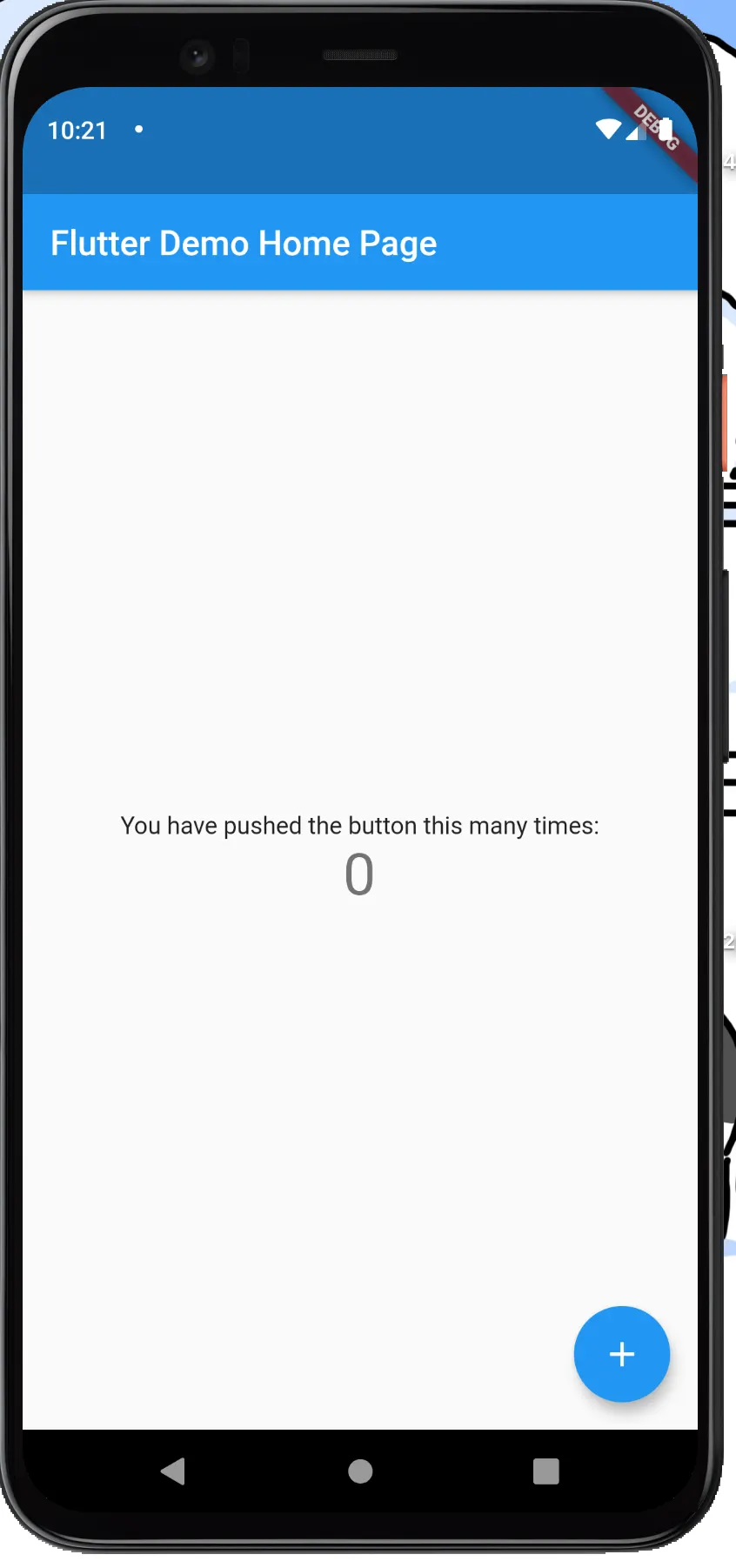 위의 화면에서 프론트엔드의 범위는 어디까지일까. 설명을 쉽게 하기위해 가지로 나누어 보겠다. 첫번째로는 화면 위쪽에 페이지 이름이 적혀 있는 파란색 위젯이다. 두번째로는 가운데에 있는 문구와 숫자가 있겠고, 마지막으로 오른쪽 아래에 있는 + 위젯이 되겠다. 프론트엔드 개발 단계에서는 이렇게 여러 위젯들을 시각적으로 보이는 것을 진행한다.