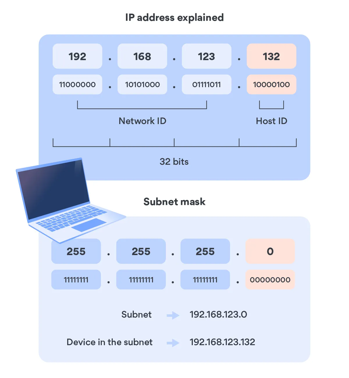 Ex) IP 주소 = 192.168.123.132, Subnet mask = 255.255.255.0