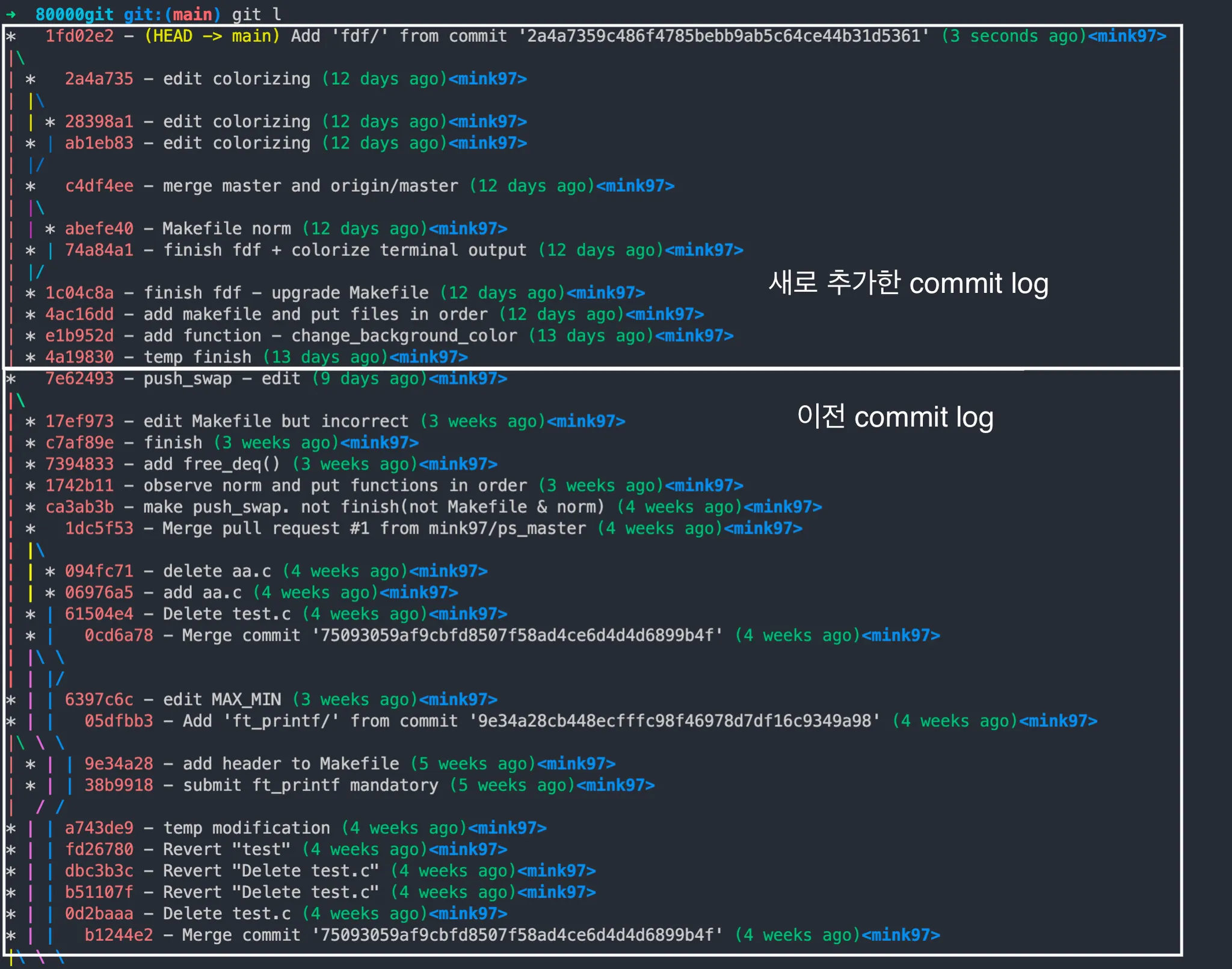 그럼 아래처럼 하나의 커밋으로 깔끔하게 남습니다!
