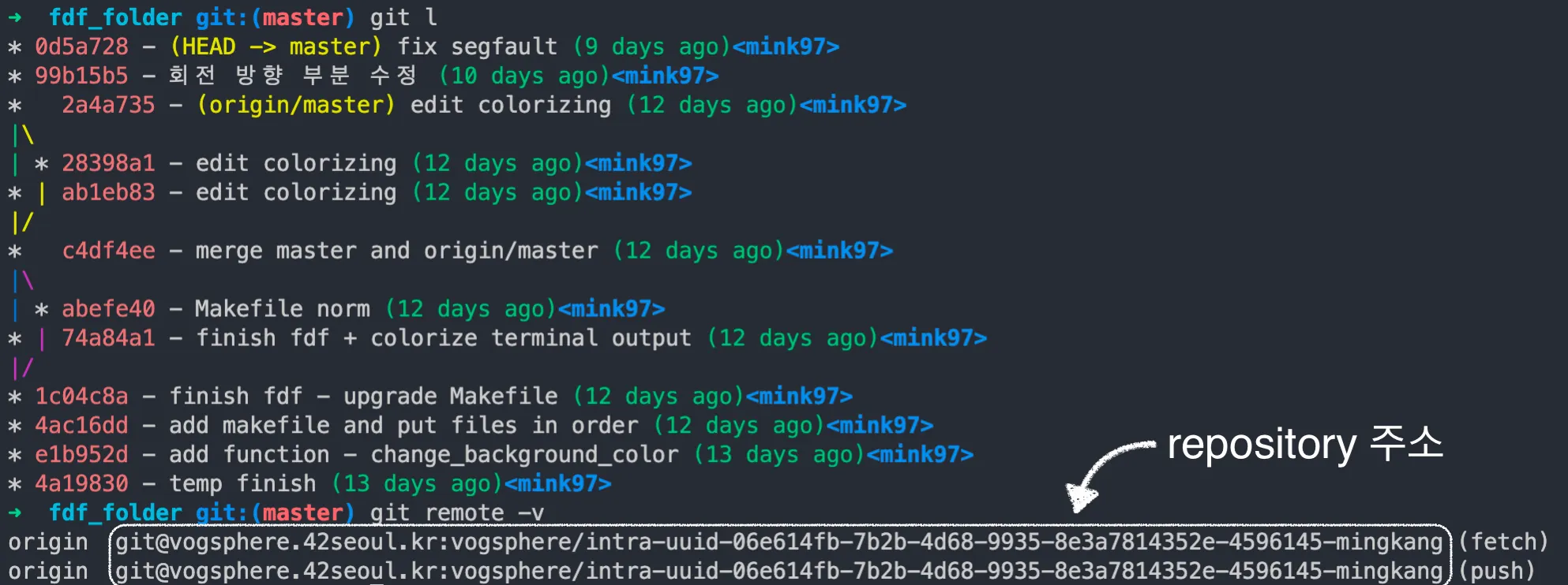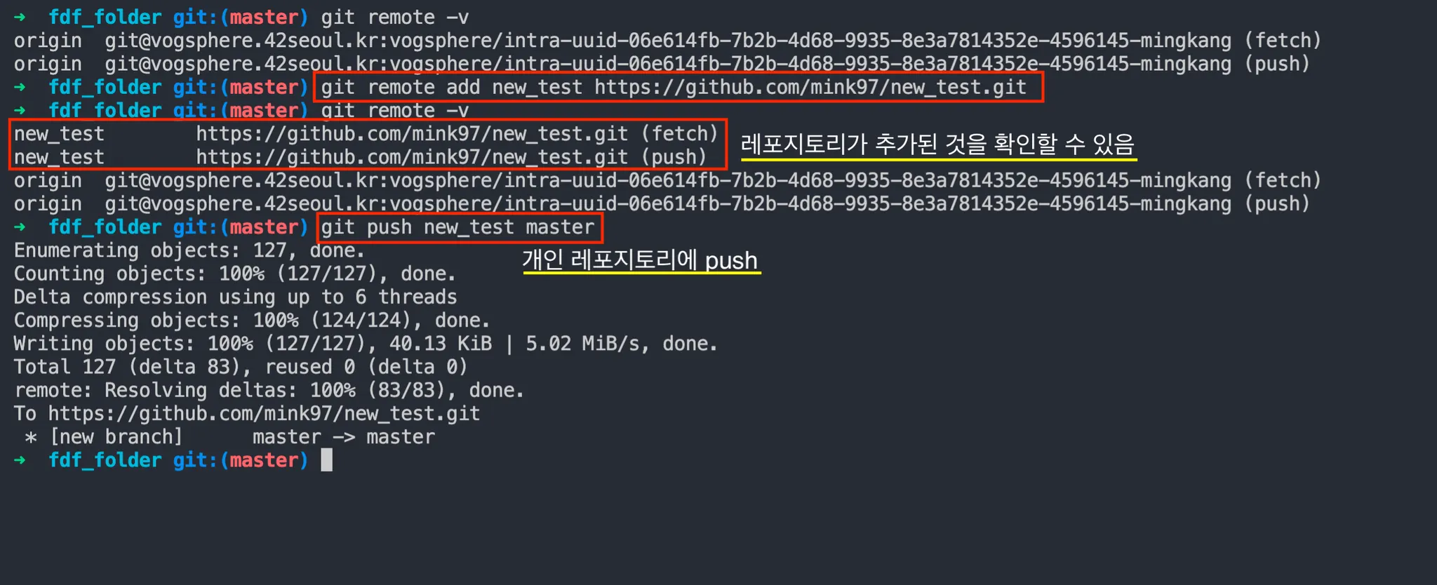 이제 이 fdf_folder라는 폴더의 원격 레포지토리(origin/master)를 위의 제 레포지토리에 넣을 겁니다!