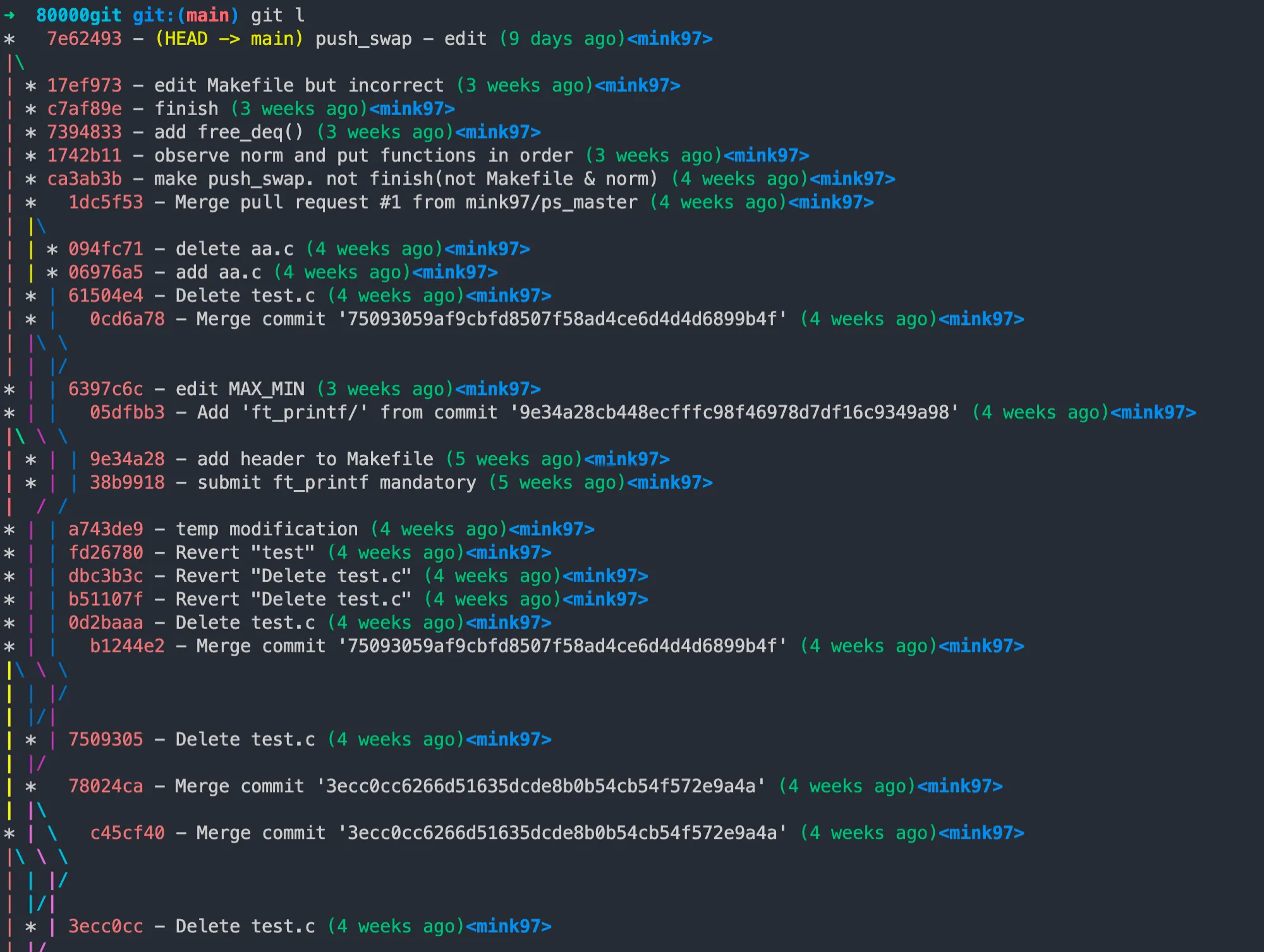 저는 커밋 로그를 확인할 때 쓰는 명령을 git l 로 따로 설정해놓았는데요. 예전에 어떤 사이트에서 보고 따라 설정한 건데 유용해서 두고두고 쓰고 있어요. 아래 명령어를 쳐서 설정하시면 됩니다!