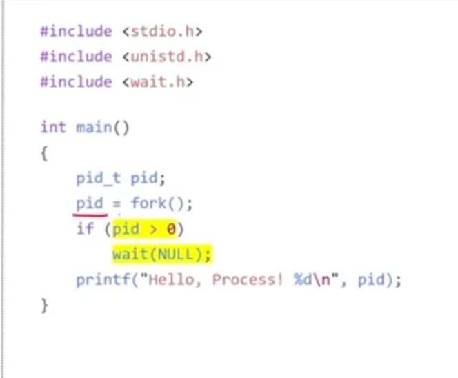 → 0이 아닌 pid값(운영체제에서 부여한 값)이면 → 부모 프로세스