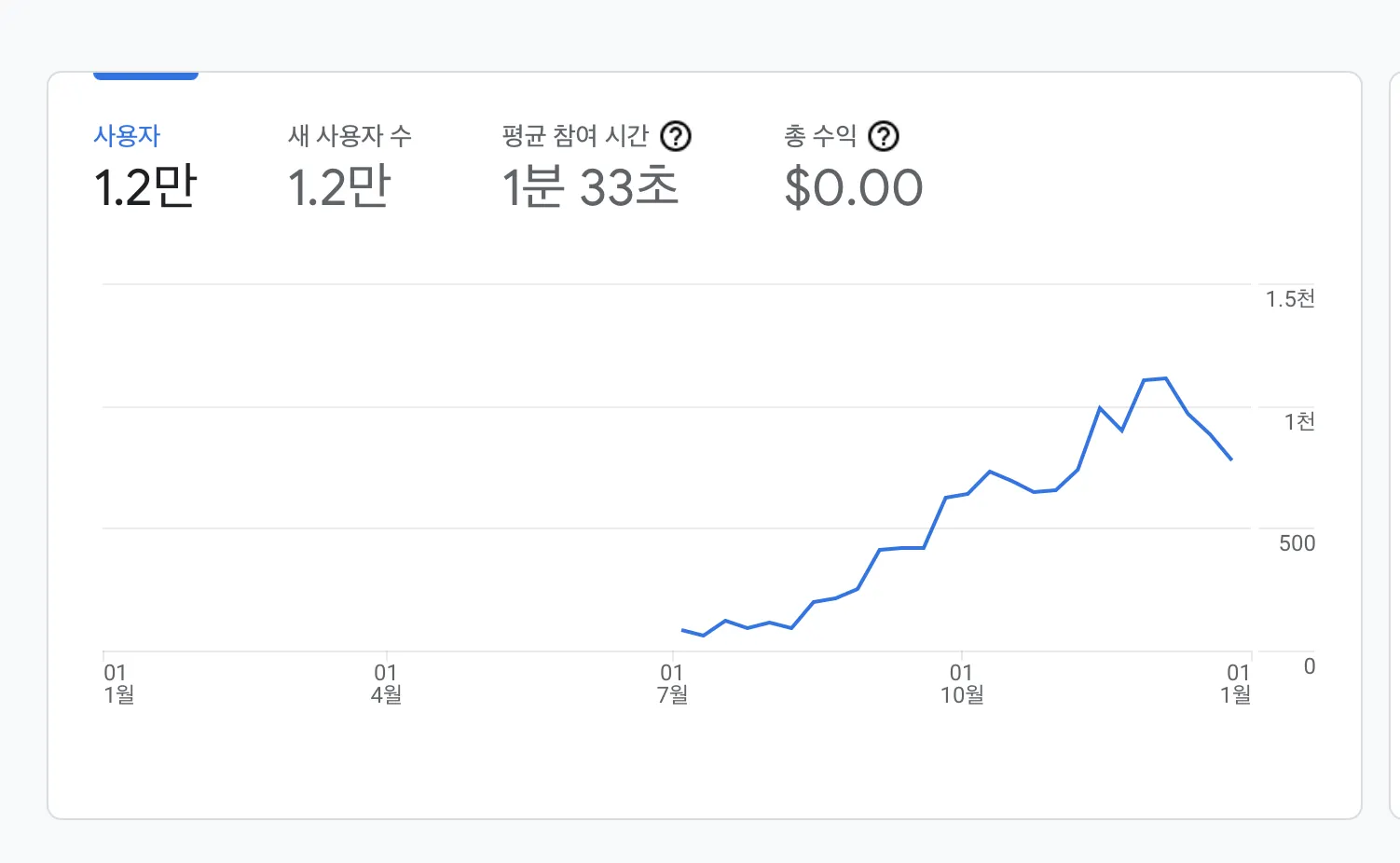 지금도 많은 분들이 팔만코딩경을 방문해 주고 있다. ga를 7월에 달았는데 5달 만에 1만뷰를 넘었다! 내년엔 3만뷰까지 갈 수 있도록!! 화이팅!