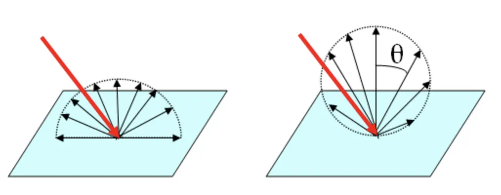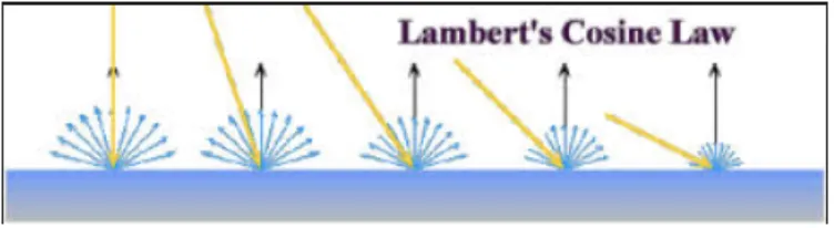 여기서 Lambert's Cosine Law(램버트 코사인 법칙)이라는 중요한 법칙이 나온다!