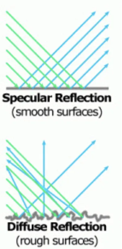 오른쪽 그림의 위는 Specular Reflection, 아래가 Diffuse Reflection이다.