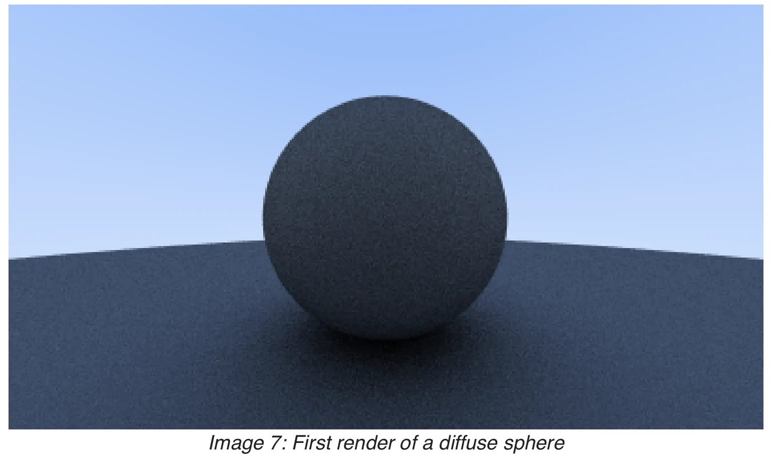 이제 본격적으로 매트 재질을 표현해보자! 빛이 구의 표면에 부딪히면 무작위로 확산하게 된다! 표면이 거칠거칠한 탱탱볼 같은 것을 생각해보자! 표면에서 반사되는 빛의 방향은 우리가 예상하지 못하는 방향으로, 즉 무작위로 퍼지게 된다.