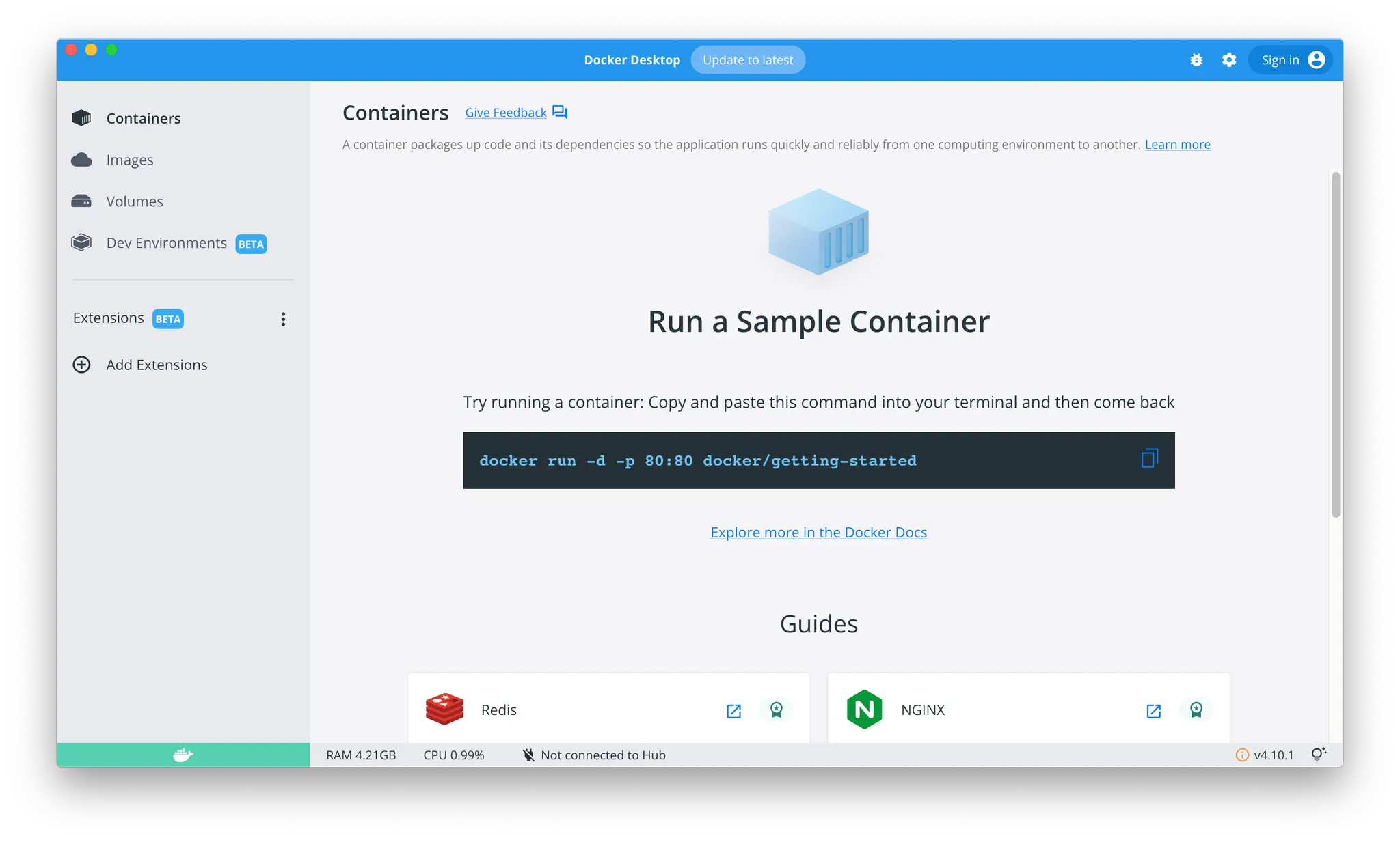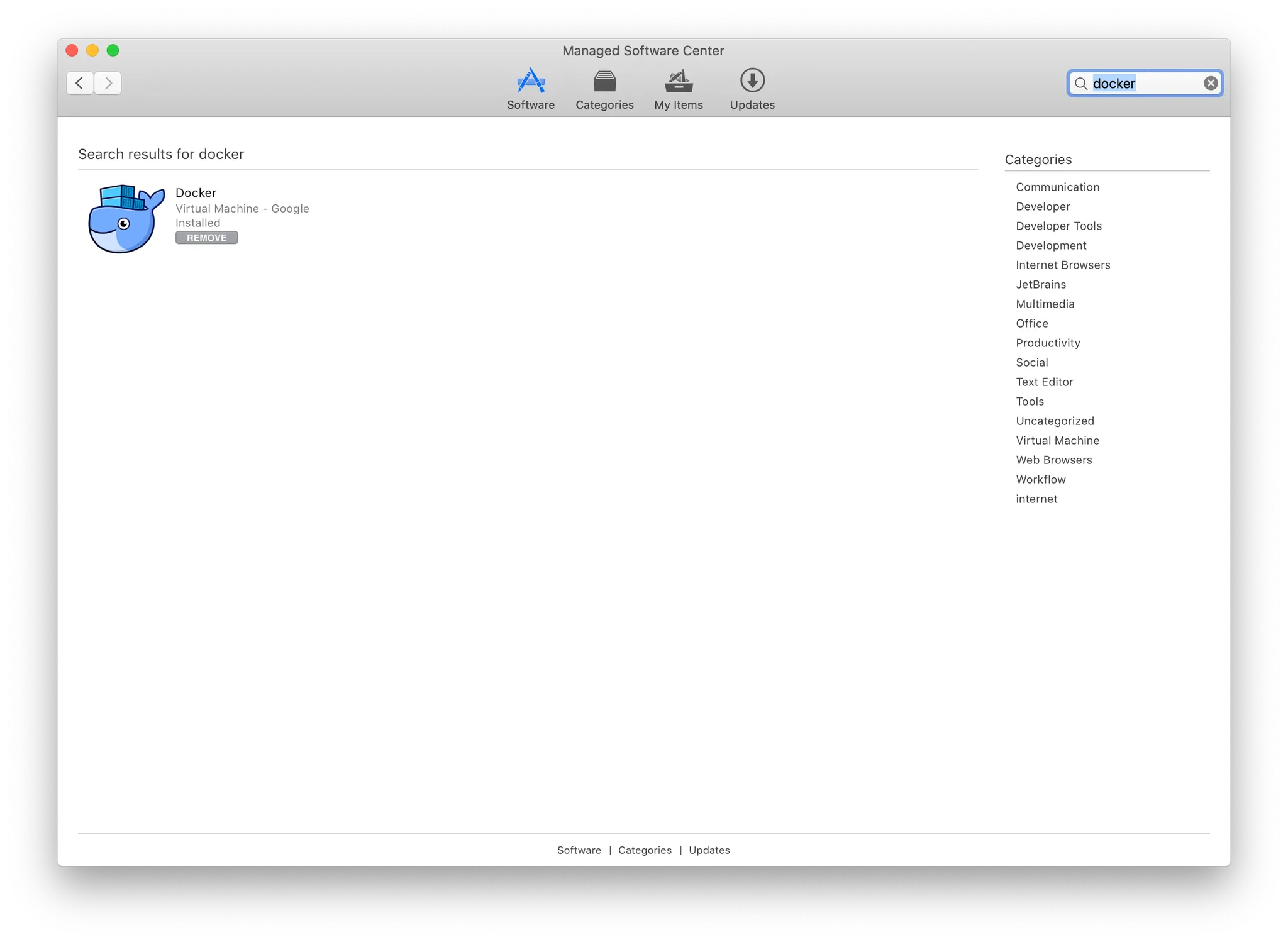 echo "${blue}Please install ${cyan}Docker for Mac ${blue}from the MSC (Managed Software Center)${reset}"