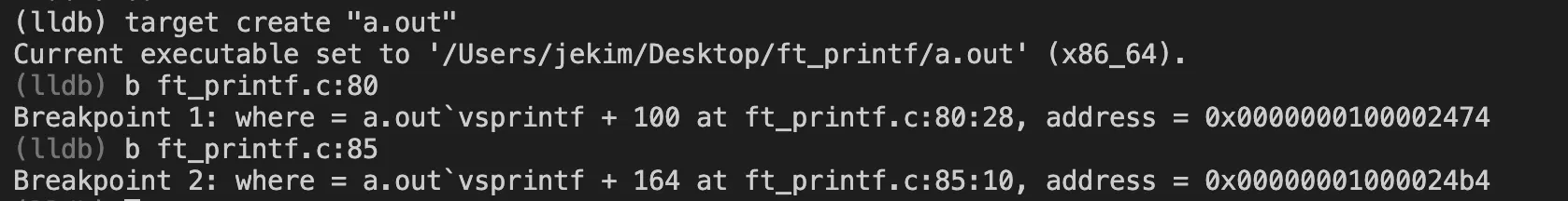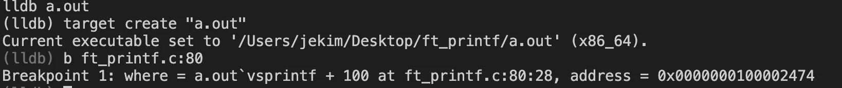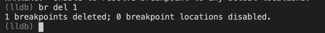 이렇게 되면 lldb는 다음과 같은 출력을 보여준다.