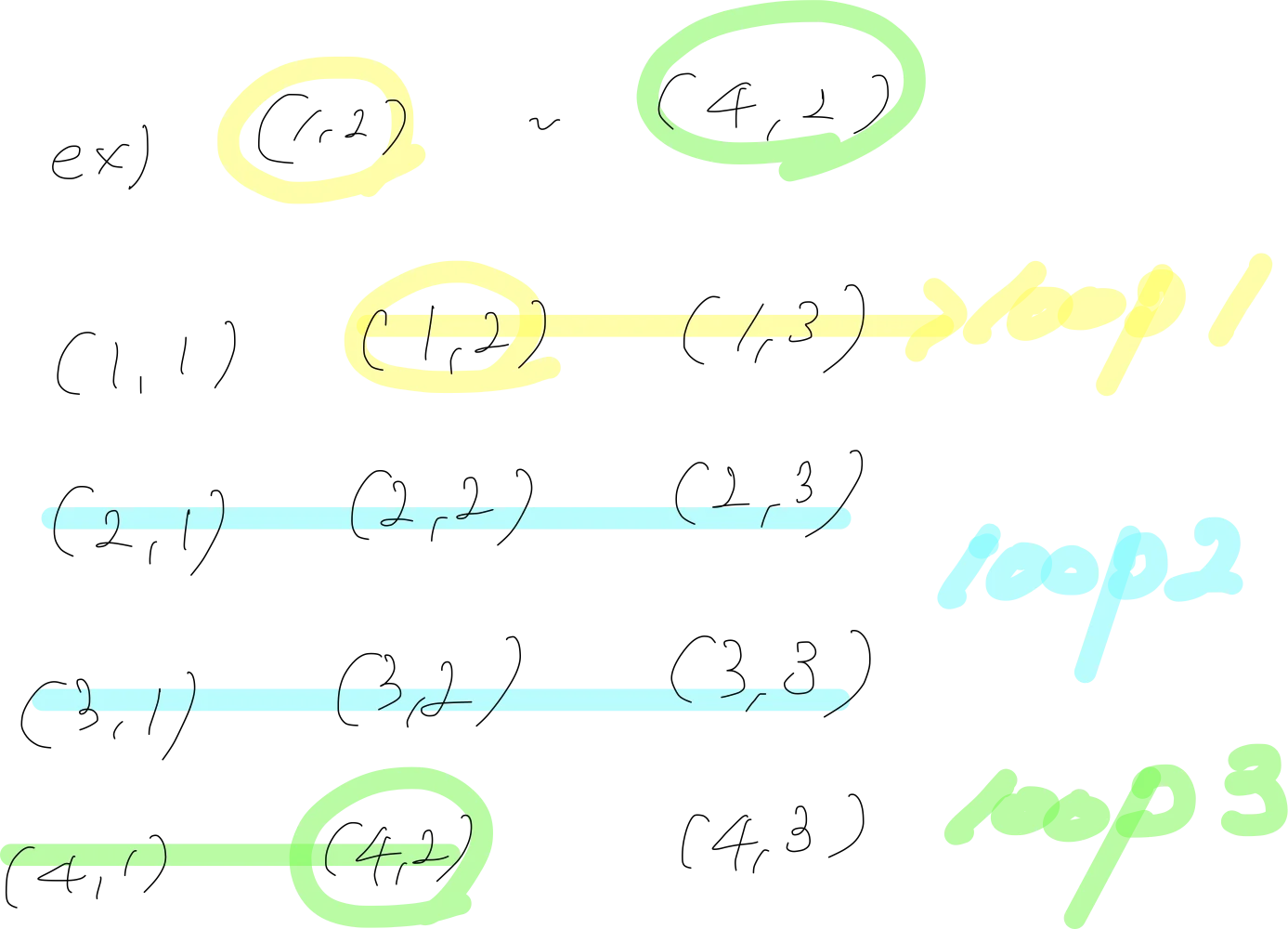 //첫좌표와 마지막좌표 사이의 행들에 대한 연산