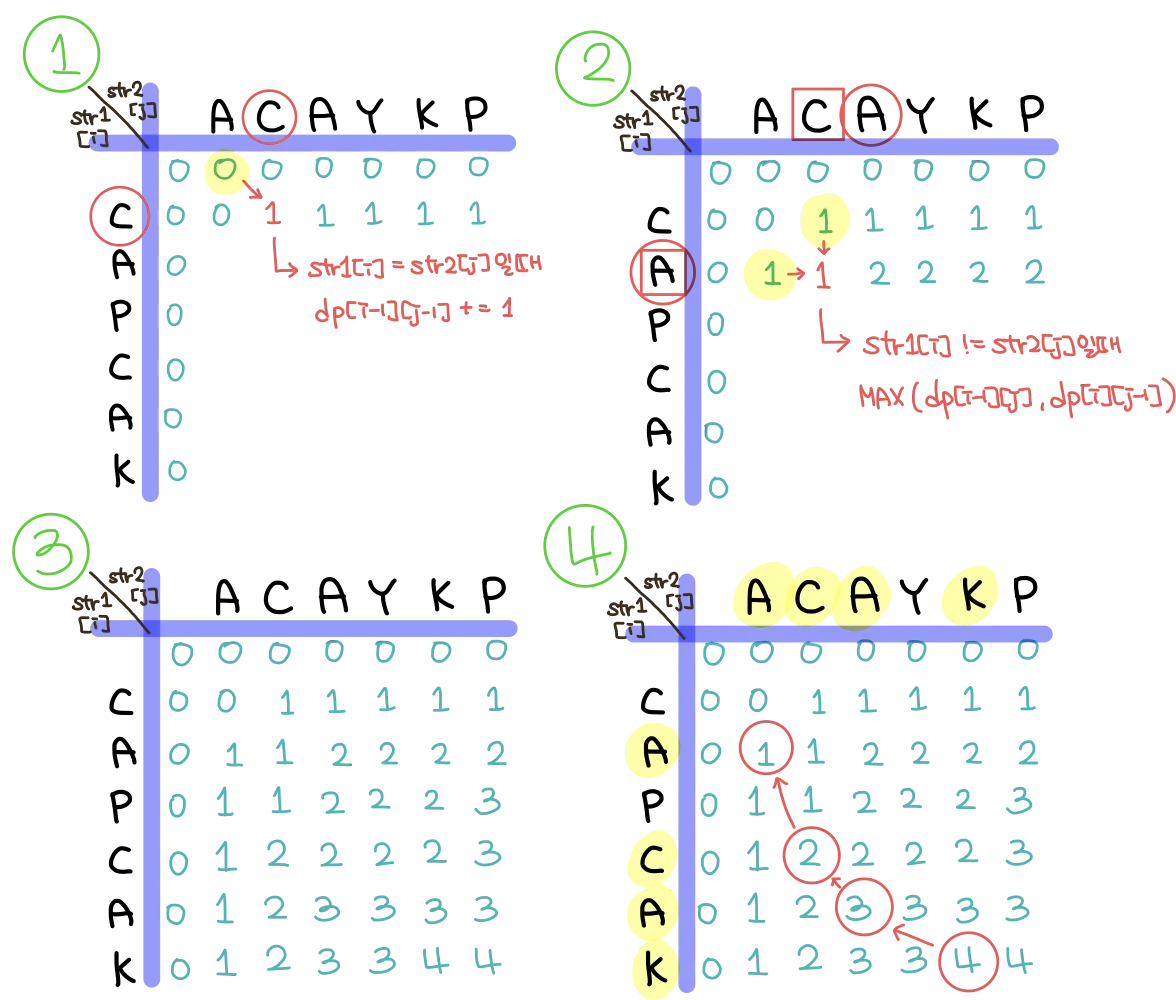 โ 2์ฐจ์ ๋ฒกํฐ๋ฅผ ์ ์ธํด ๊ฐ๋ก str2.length, ์ธ๋ก str1.length ๋งํผ์ ๋ชจ๋ 0์ผ๋ก ์ด๊ธฐํํจ