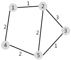 다음으로, 거리 테이블 상에서 가장 작은 값을 가진 5번 노드를 방문한다.