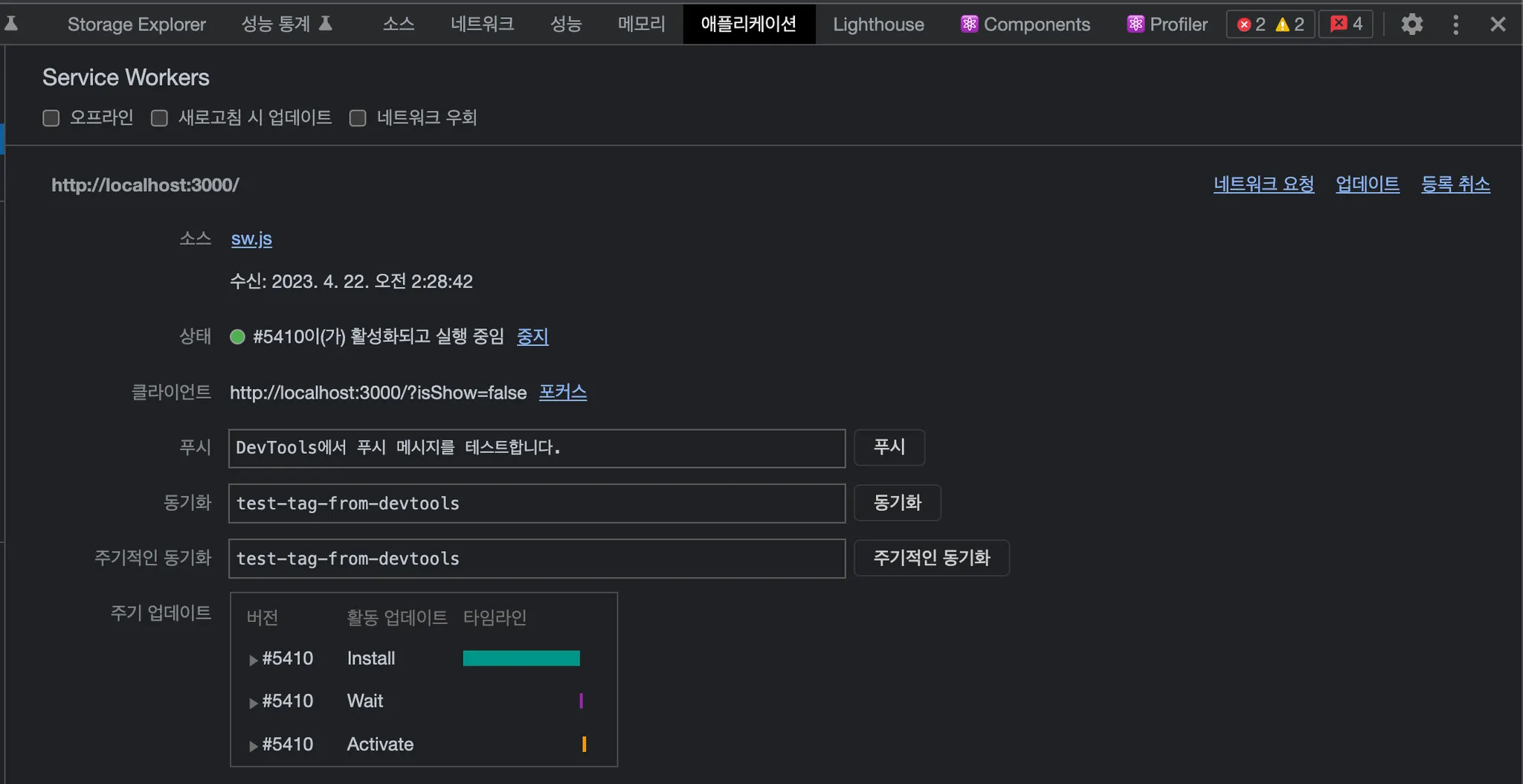 정상적으로 등록되면 아래와 같이 개발자 도구에서 확인할 수 있다.
