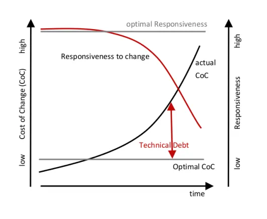따라서 위의 그래프의 내용과 같이 기술부채를 쌓게된다.
