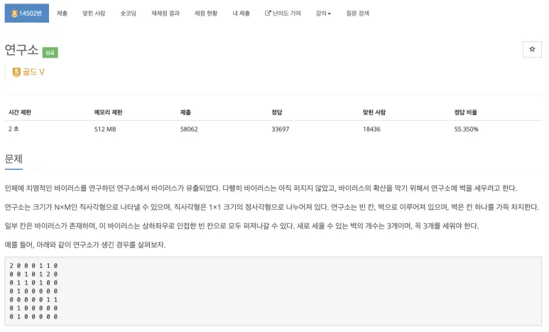 아무튼 이 코드를 이용한 문제는 백준 14502 연구소 문제이다.