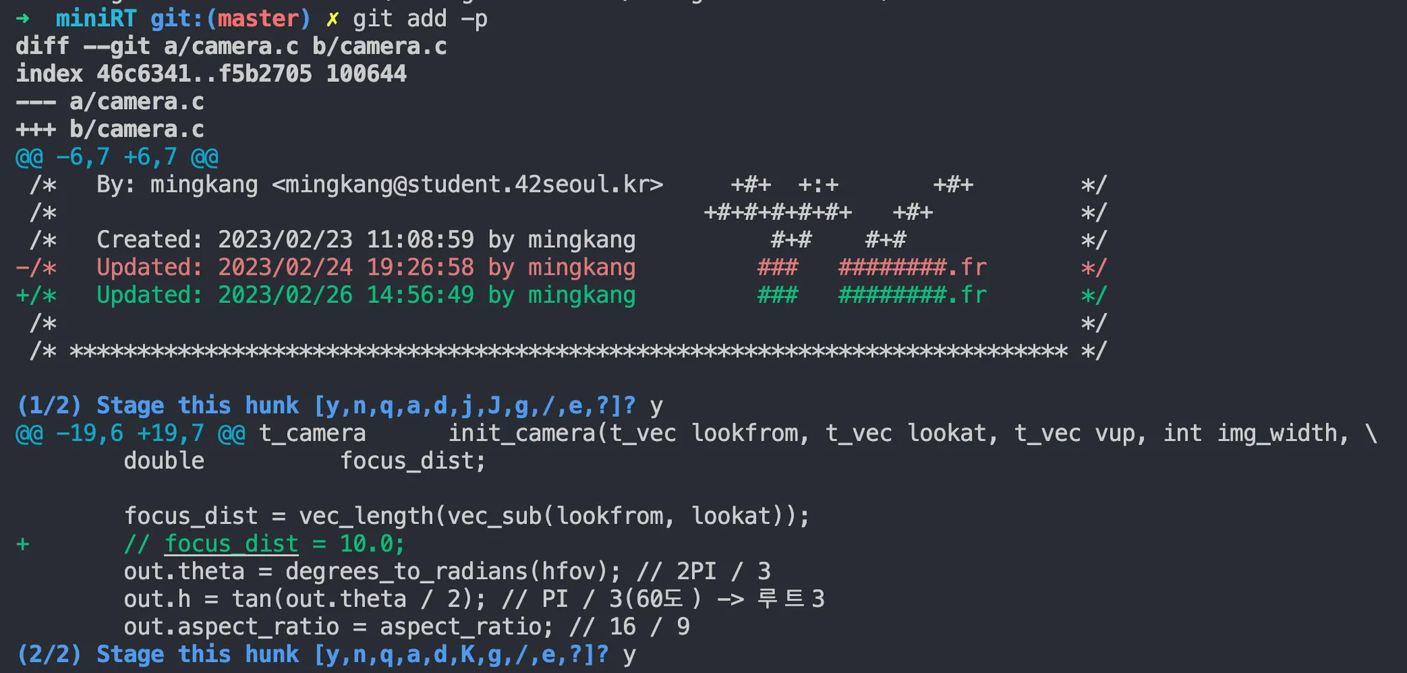 그럼 보시다시피 hunk가 더 쪼개져서 자세히 물어보는 것을 확인할 수 있습니다.