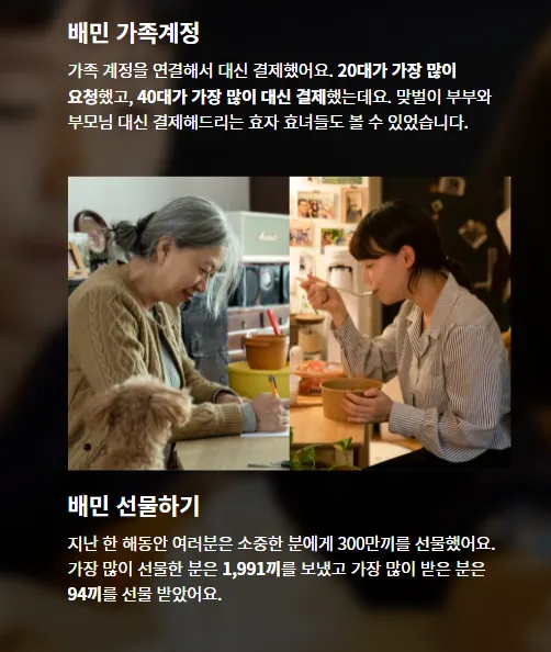 한편 지난해부터 최신 고객 트렌드를 반영해 '배민트렌드 2021'를 출간한 우아한형제들은 올해부터 1년에 한 번이 아닌 매달 트렌드 리포트를 발간하기로 했다.김범준 우아한형제들 대표는 "배민 트렌드가 배달음식을 즐기는 고객들의 취향을 파악하는 것을 넘어 식당 사장님들에게 경영 길잡이가 될 수 있길 기대한다"며 "앞으로도 고객과 식당이 모두 만족하는 수퍼 앱이 되도록 최선을 다할 것"이라고 말했다.
