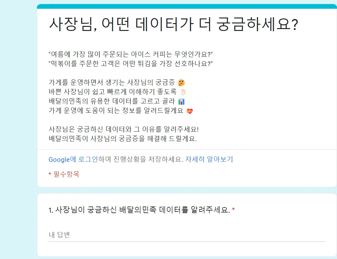 심지어 사장님이 원하는 데이터를 구글폼을 이용해 자유롭게 신청받고 있음.
