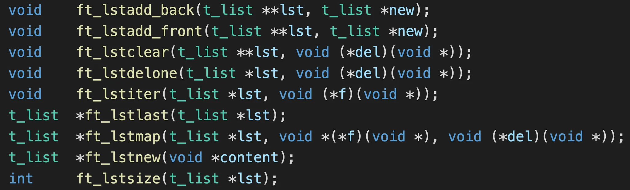 Libft의 Bonus에서는 링크드리스트를 다루게 된다. 제목과 관련하여 아래의 프로토타입을 잘 살펴보자. lst로 주어지는 파라미터의 type에 어떤 것은 포인터, 어떤 것은 더블포인터이다. 그 이유에 대해서 생각해 본적이 있는가?