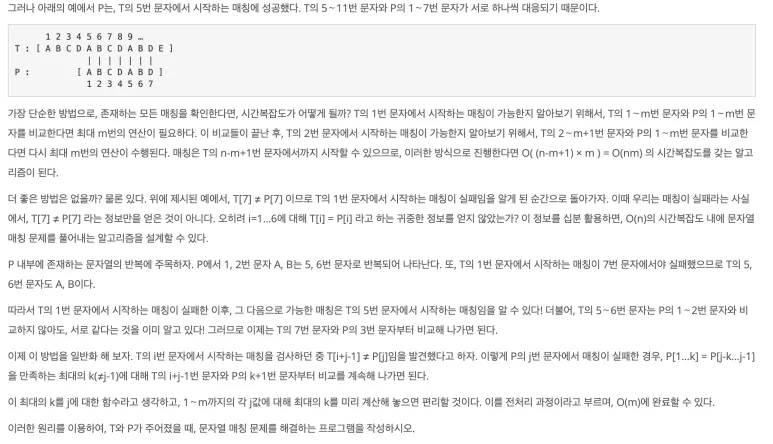 다만 찾는 문자열과 패턴 문자열을 전부 탐색하지 않는다는 점에서 시간복잡도가 급격히 줄어듦.
