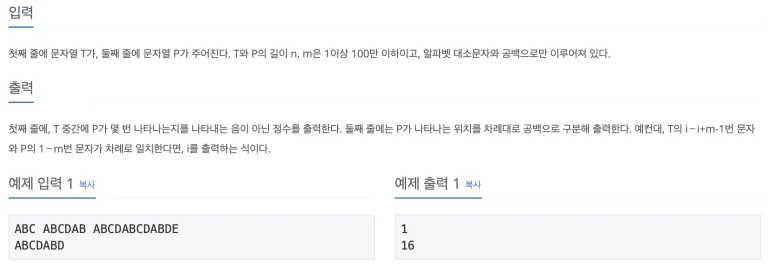 전체 솔루션을 정리하자면, 실패함수를 구한 후, kmp를 돌려서 패턴 하나를 전부 찾았을 때 카운트를 증가시키고 패턴 시작 위치를 큐에 푸쉬함.