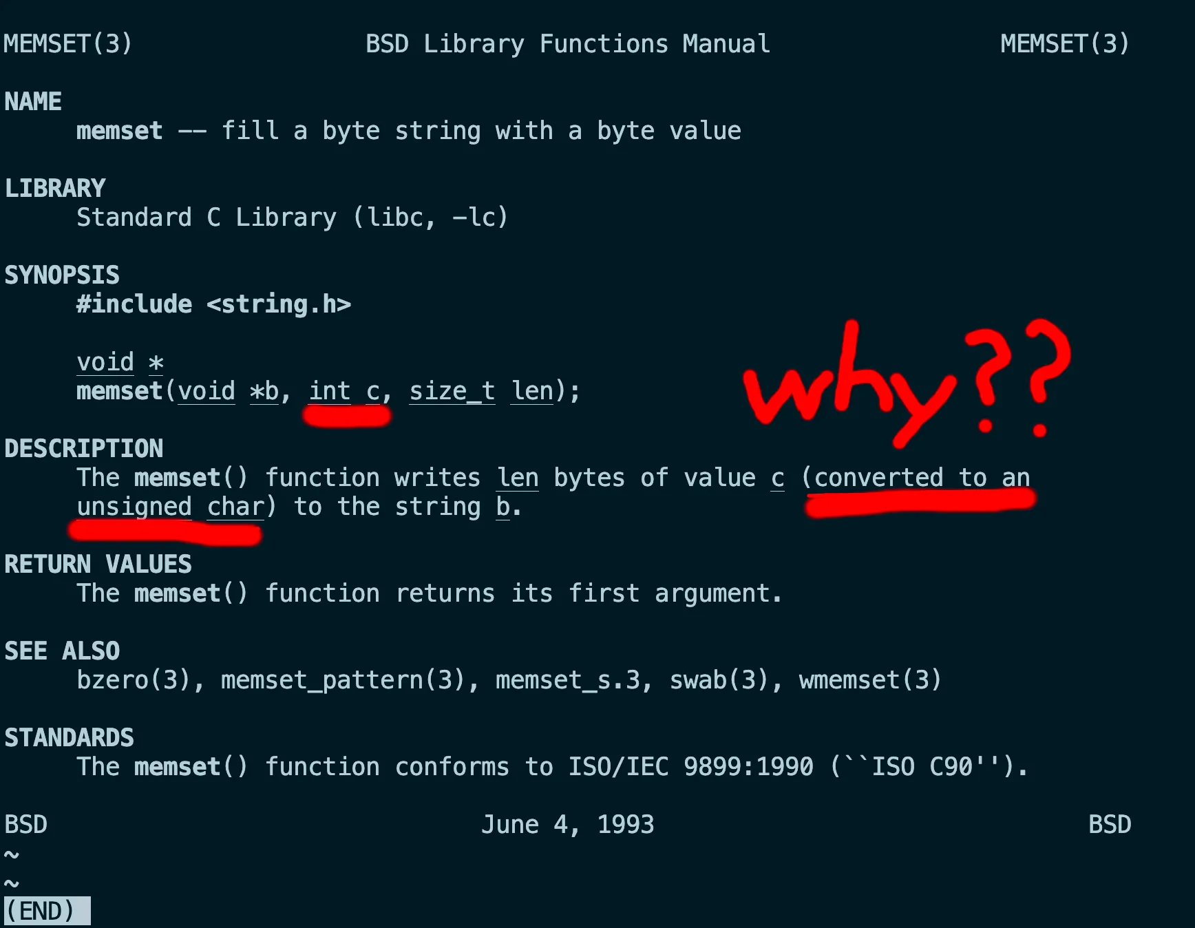 현재 이론적으로 memset()과 같은 함수들에 대해 int 대신 char를 받도록 ‘수정할 수 있긴’하다.