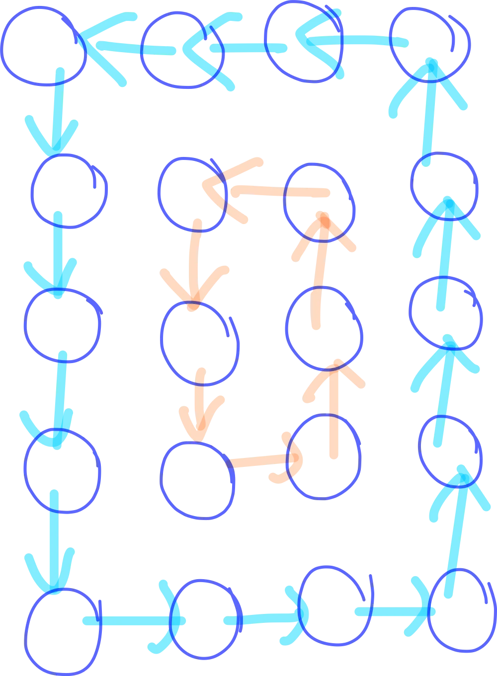 rotate_num = R % 2*(N+M-2) # 회전하는 수 (4*4 사각형이면 2번 도는 것고 14번 도는 것이 같음!)